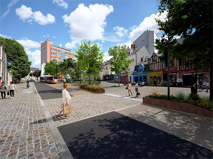 Le projet comporte également un vaste volet d’aménagements paysagers, avec la requalification complète de plusieurs rues, avenues et boulevards, mais aussi de 4 places urbaines : Place du Pâtis Saint-Lazare, Place de l’Hôpital, Place de l’Eperon et Place George Washington. Sur l’emprise du projet, le nombre d’arbres sera plus que doublé, et de nombreux espaces de plantations créés.